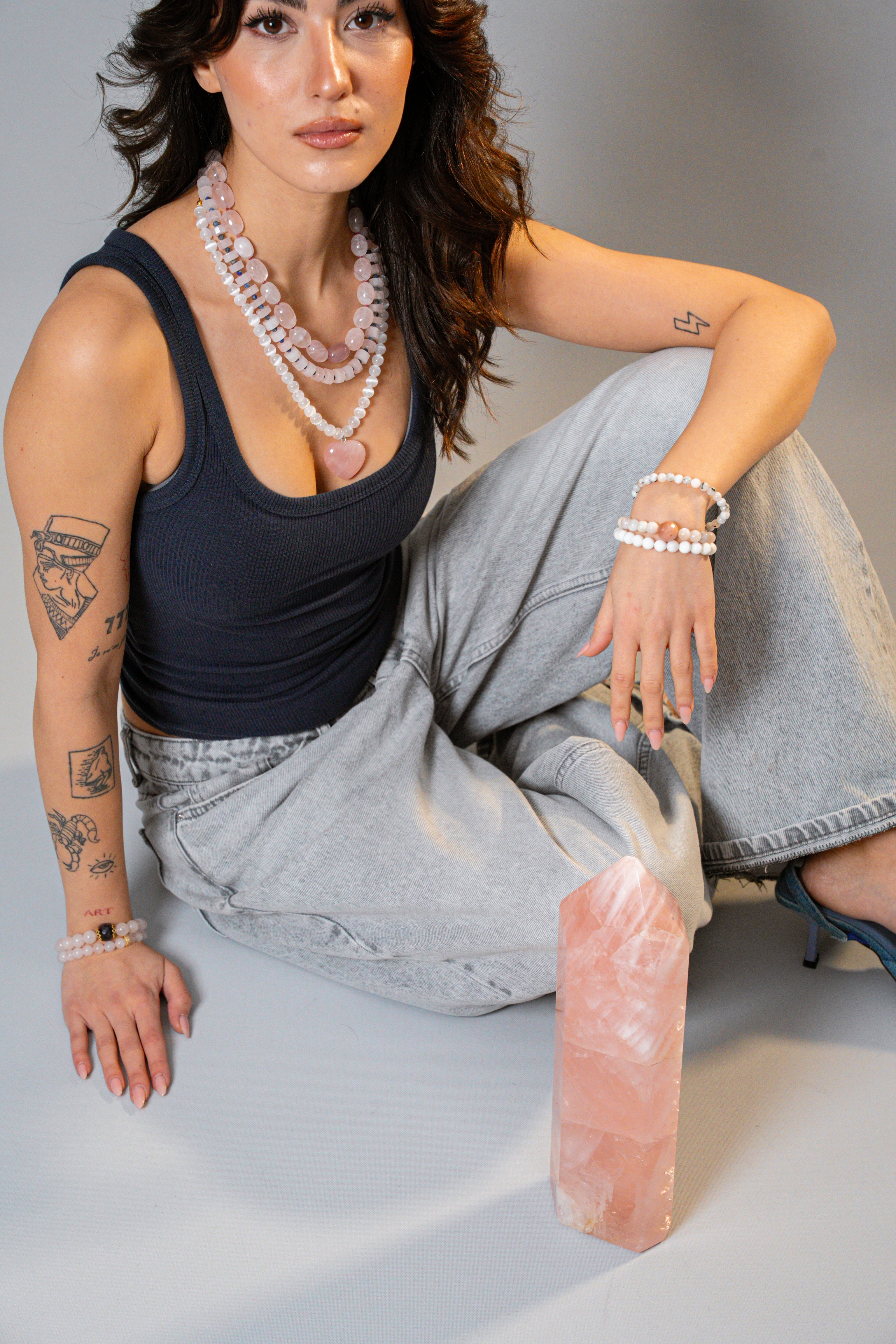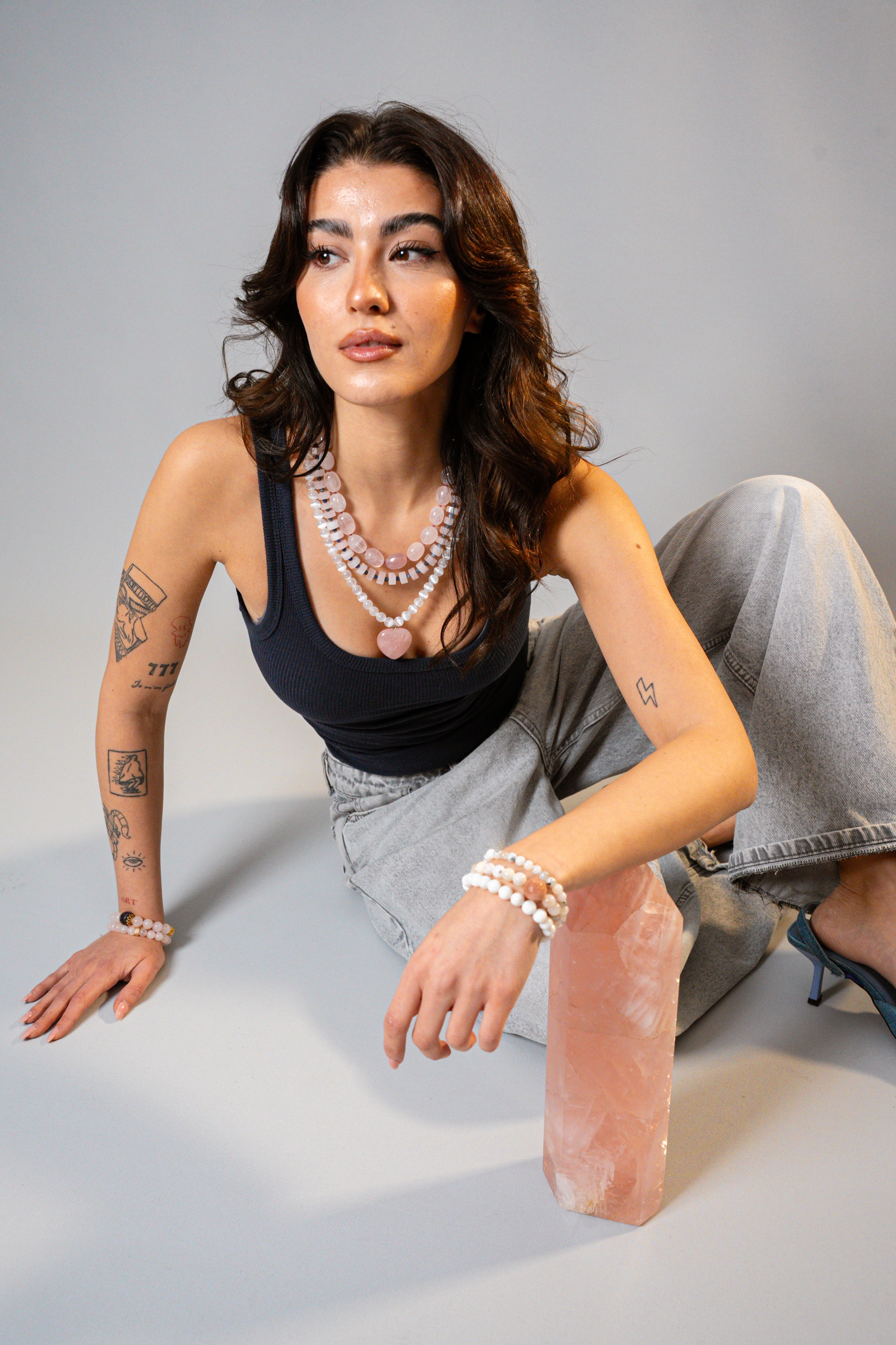 Selenit ve Pembe Kuvars Kalp (Sevgi Frekansı Kolye)