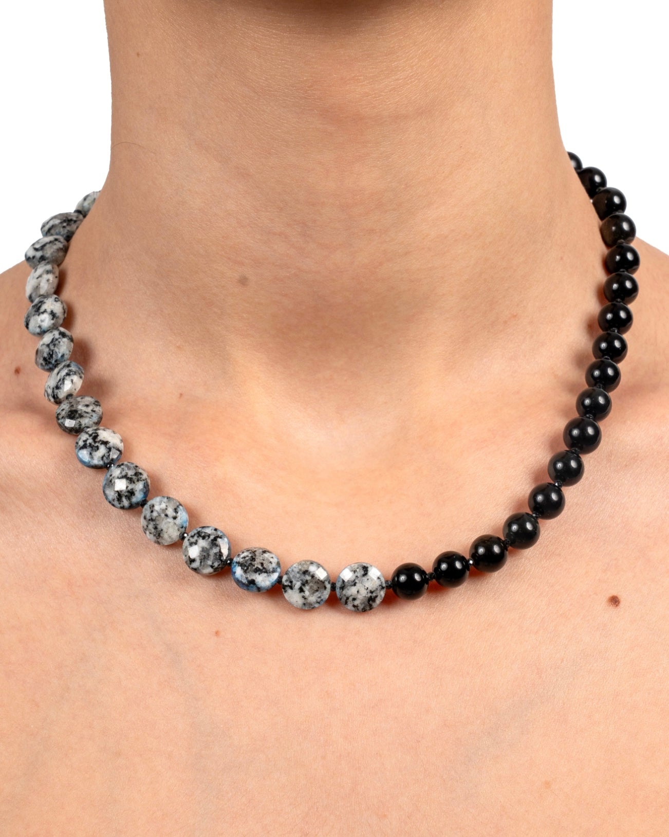 Obsidyen , Siyah Turmalin , Dalmaçyalı Jasper (Sınır Koy Kolye)